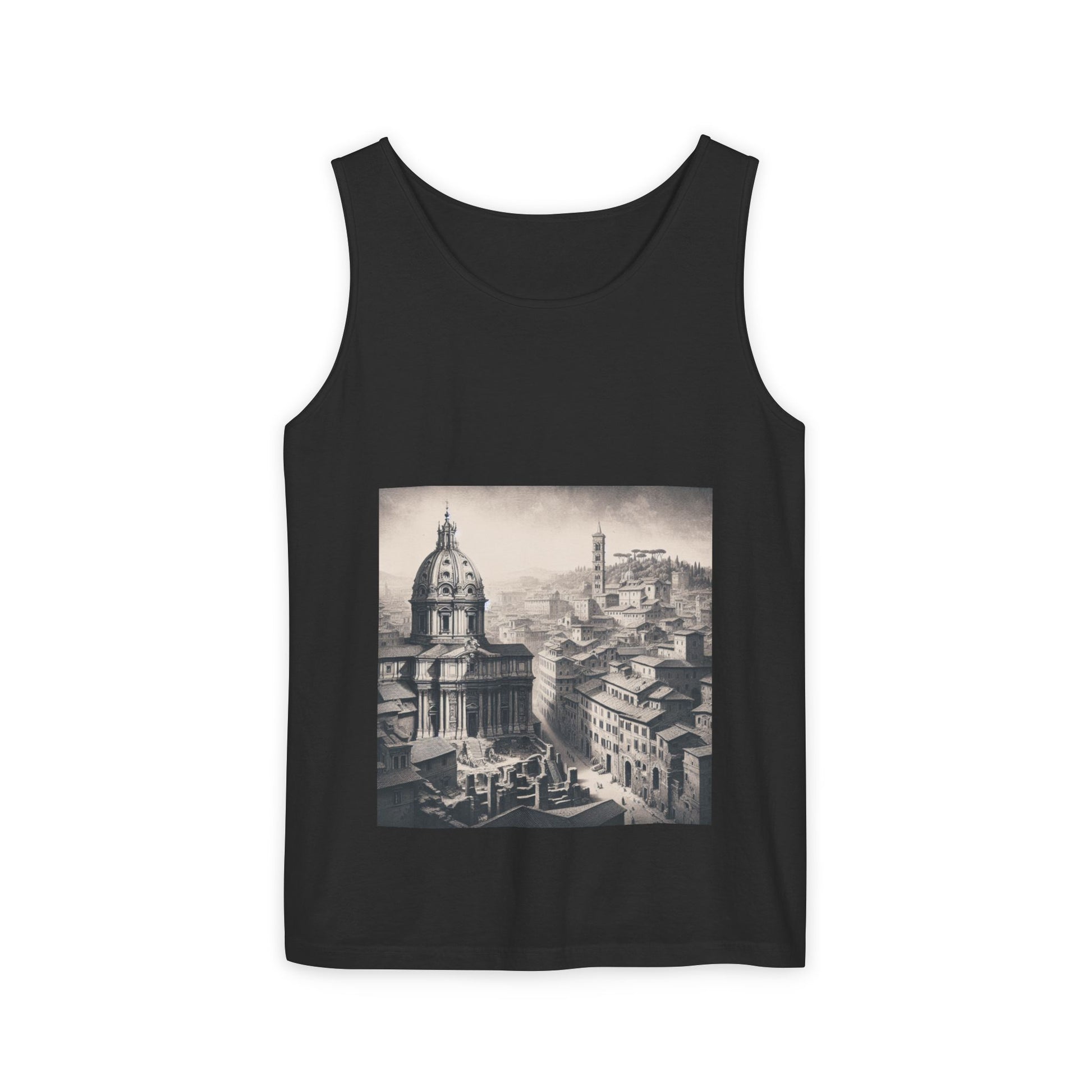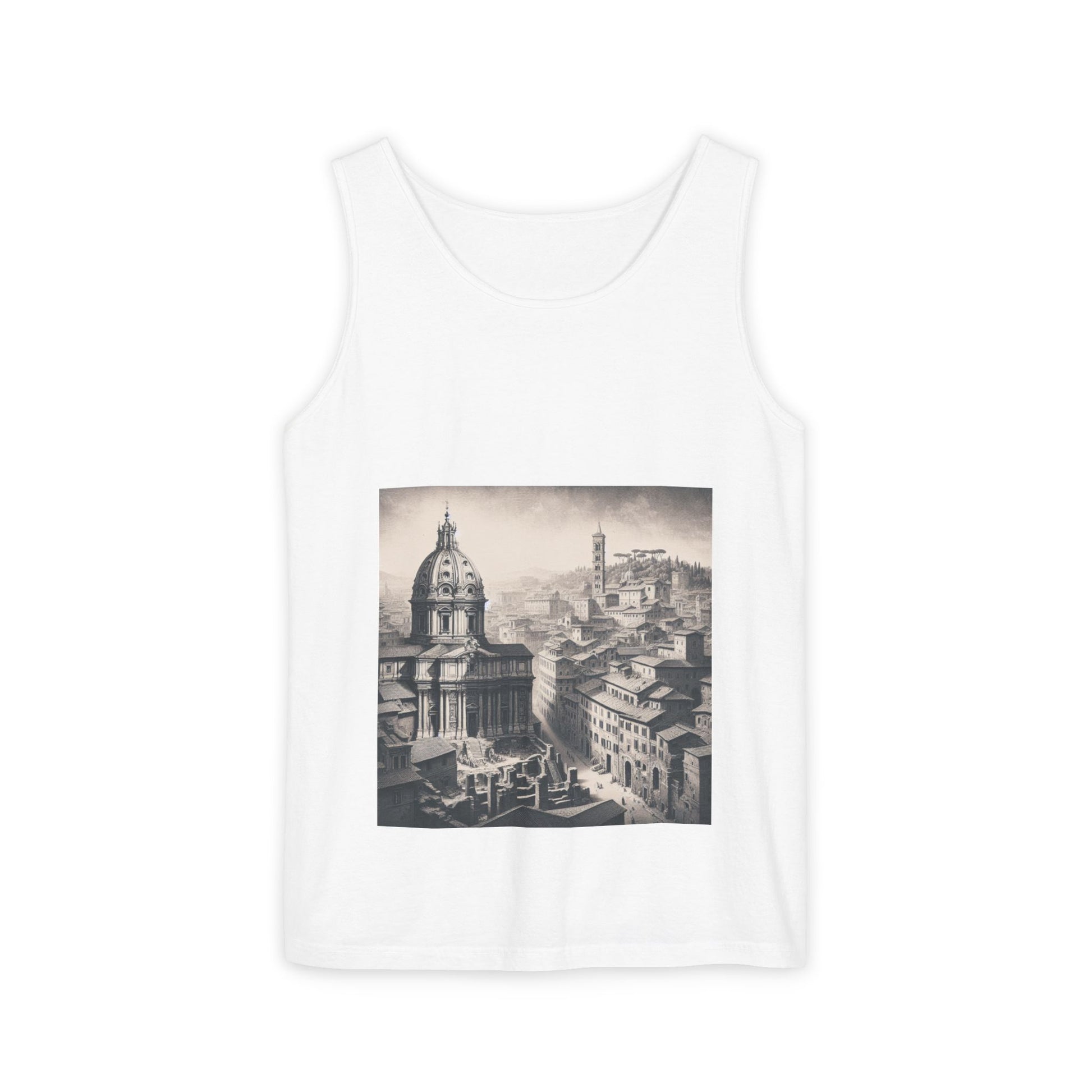 Vintage Art Scene Tank Top | Unisex Casual Wear, Summer Top, Gift for Art Lovers, Travel Enthusiasts, Unique Fashion